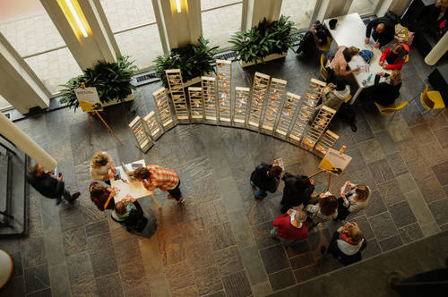 De verhalen, vormen en symbolen van alle mensen die mee hebben gedaan zijn in vijf staanders verwerkt, de vijf staanders vormen samen de Vuurtoren van Verhalen.